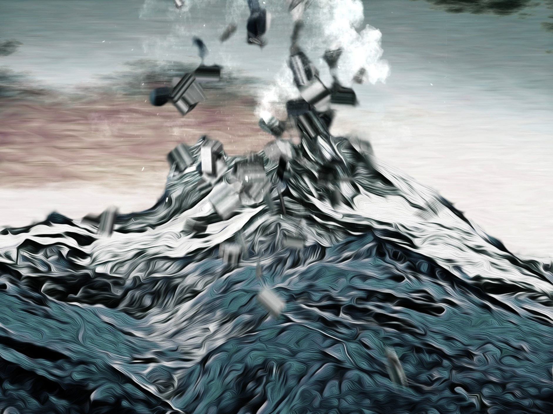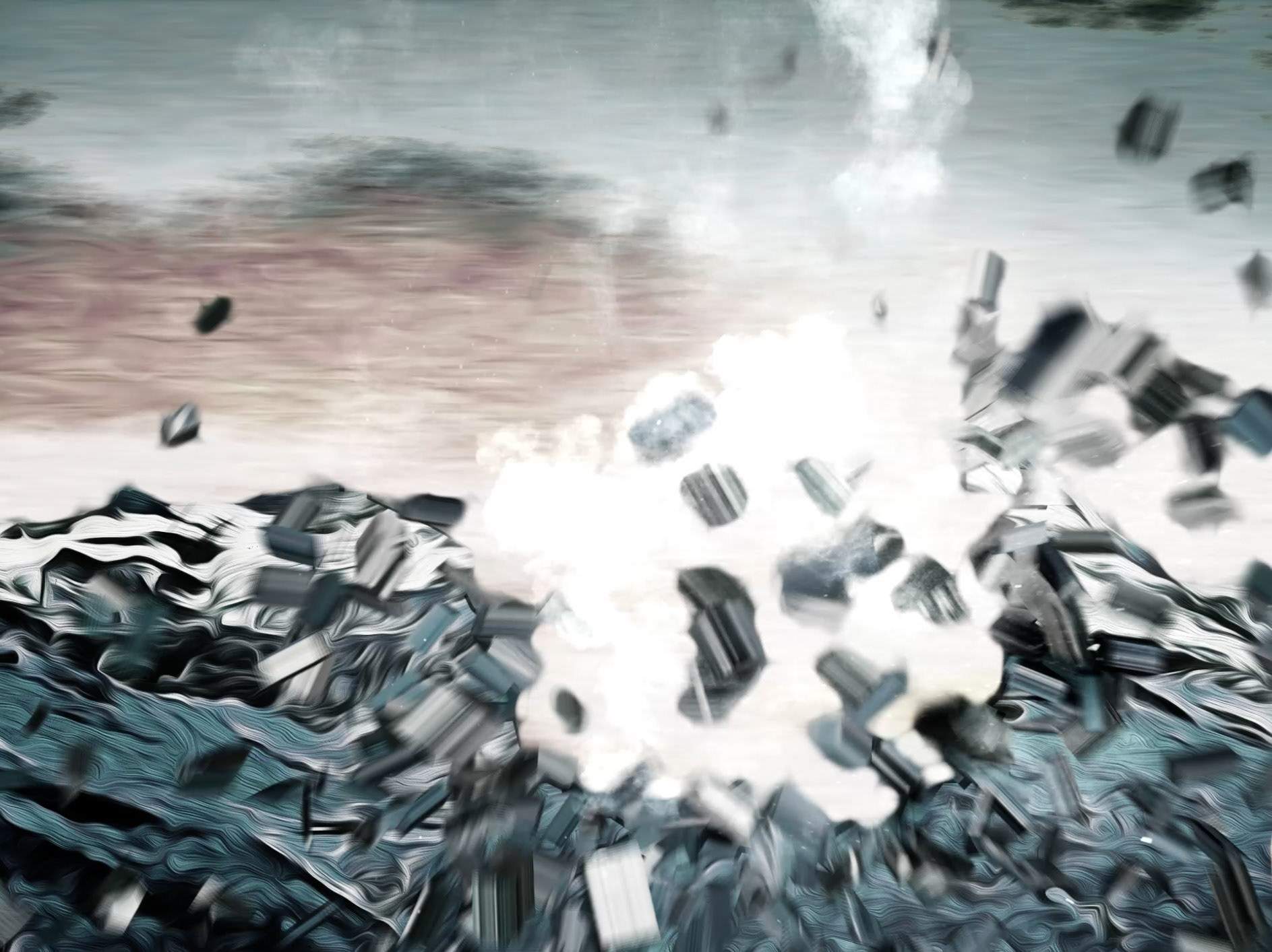 Videoinstallation für Einlass und Prolog, mit einer abstrahierten Sprengung des Matterhorns.